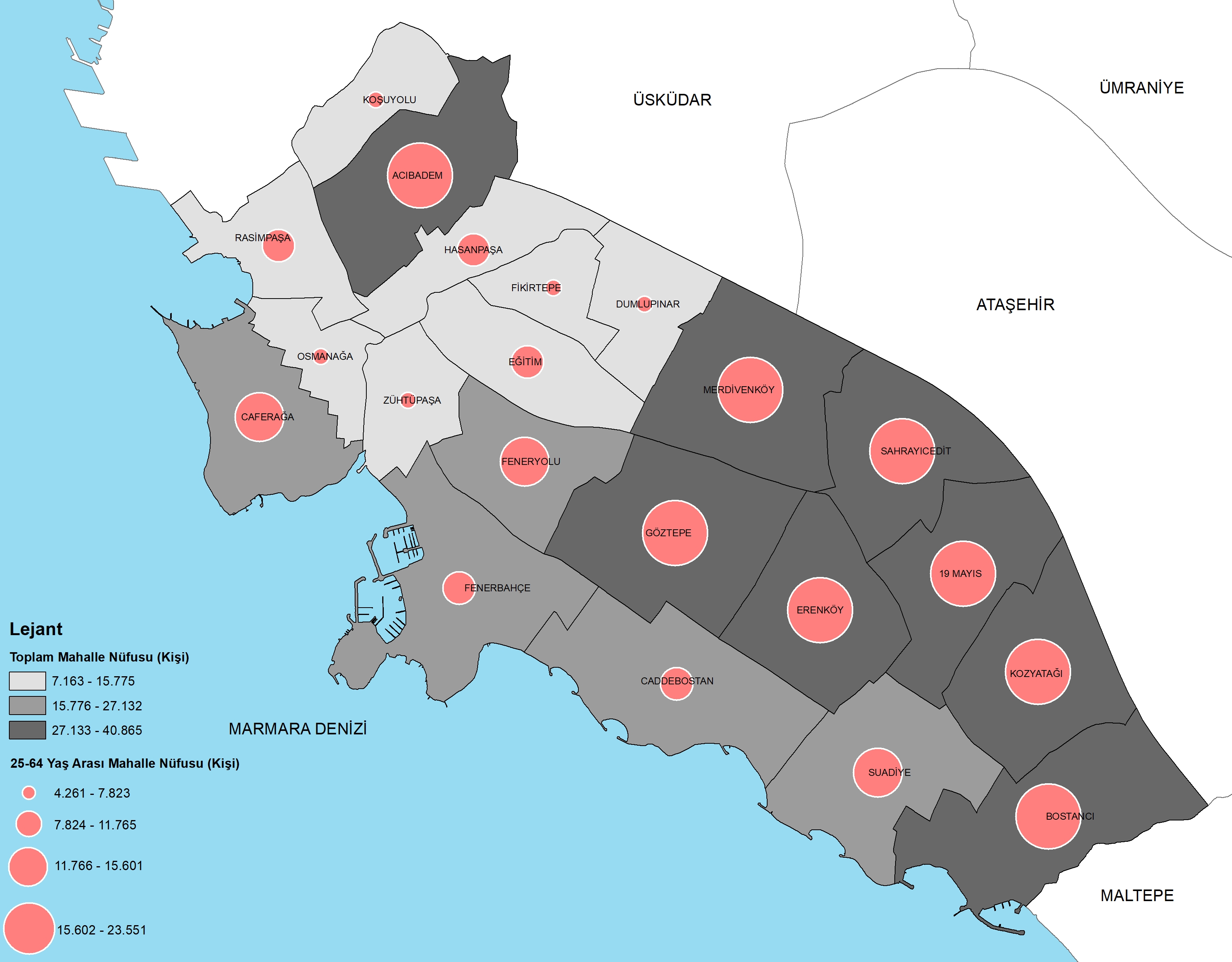 25-64 Yaş Arası Nüfusun Mahallelere Göre Dağılımı Haritası