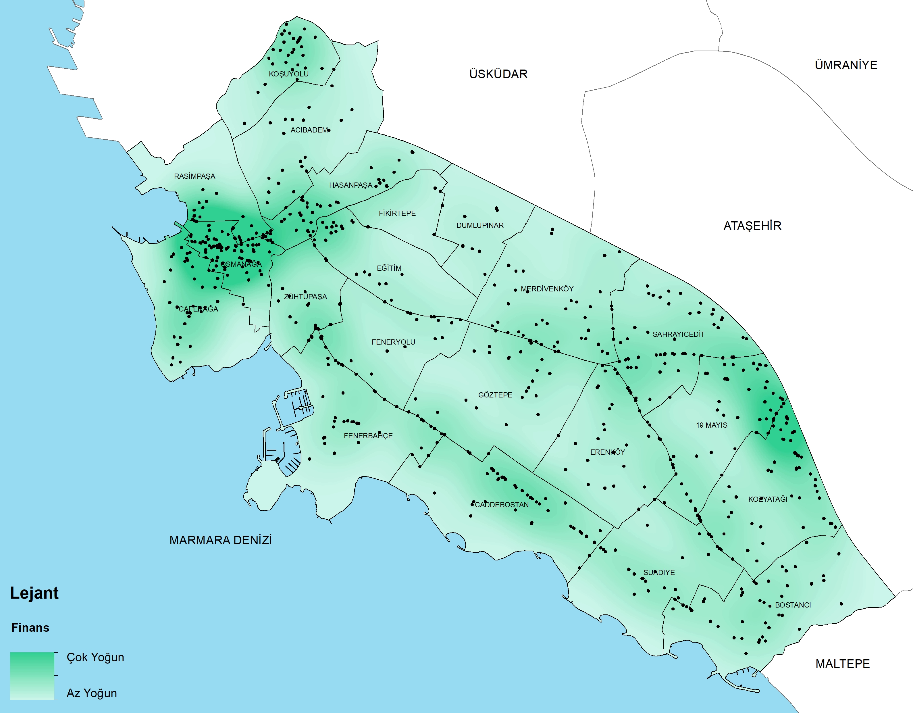 Kadıköy İlçesi Finans İşletmeleri Yoğunluk Haritası